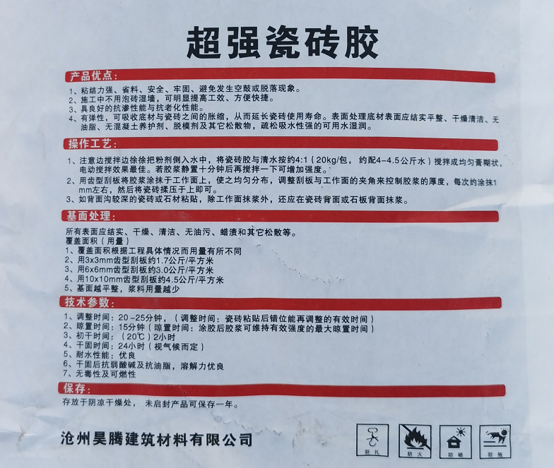 瓷磚粘合劑是無毒、無臭、無污染的環(huán)保產(chǎn)品。它能大幅度地提高飾面材料與基材之間的粘接強(qiáng)度,抗滑移,具有良好的耐水、耐酸堿及耐老化性能,能經(jīng)受干濕交替及冷熱交替的考驗(yàn),徹底解決了直接用水泥粘貼的種種弊端。